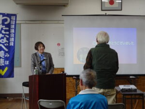 終わったばかりの2月議会についての報告に続き、皆様からいろいろなご意見ご質問をいただきました。
