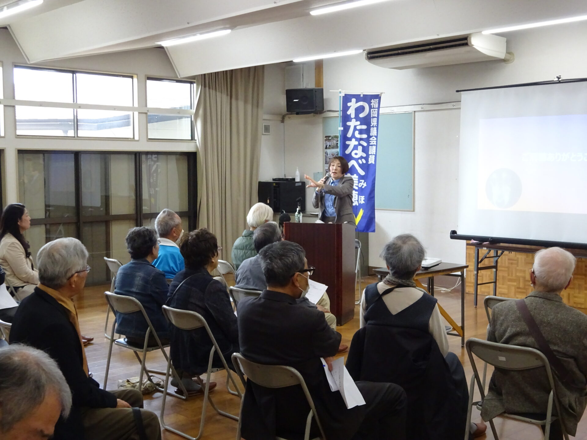 3月28日(土)午前、太宰府東中学校区の星ヶ丘区公民館でわたなべ美穂を囲む会(県政報告会)を開催しました。桜の見頃を迎えはじめ好天にも恵まれた週末、ご参加いただいた皆さまありがとうございました。